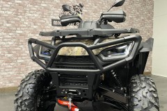 Elektryczne wspomaganie kierownicy, elektryczna wyciągarka 4500 lbs (nylon), szerokie wahacze, siedzisko z oparciem, hak holowniczy, kompozytowe bagażniki przód i tył, cyfrowy wielofunkcyjny wyświetlacz, oświetlenie Full-LED, przedni i tylny ochronny bumper, poszerzone błotniki, aluminiowe stopnie antypoślizgowe, 14" aluminiowe felgi, 26" opony, w pełni regulowane amortyzatory z progresywnymi sprężynami, osłony dłoni, Smart Commanding System (SCS) + aplikacja mobilna Smart-Moving App.