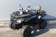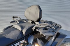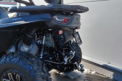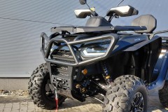 Elektryczne wspomaganie kierownicy, elektryczna wyciągarka 4500 lbs (nylon), siedzisko z oparciem, hak holowniczy, kompozytowe bagażniki przód i tył, cyfrowy wielofunkcyjny wyświetlacz, światła halogenowe, przedni i tylny ochronny bumper, aluminiowe stopnie antypoślizgowe, 14" felgi aluminiowe, 26" opony, osłony dłoni, Smart Commanding System (SCS) + aplikacja mobilna Smart-Moving App.
