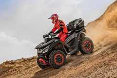 Elektryczne wspomaganie kierownicy, elektryczna wyciągarka 4500 lbs (nylon), szerokie wahacze, siedzisko z oparciem, hak holowniczy, kompozytowe bagażniki przód i tył, cyfrowy wielofunkcyjny wyświetlacz, oświetlenie Full-LED, przedni i tylny ochronny bumper, poszerzone błotniki, aluminiowe stopnie antypoślizgowe, 14" aluminiowe felgi, 30" opony, w pełni regulowane amortyzatory z progresywnymi sprężynami, osłony dłoni, Smart Commanding System (SCS) + aplikacja mobilna Smart-Moving App.