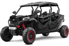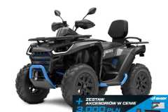 elektryczne wspomaganie kierownicy, elektryczna wyciągarka, siedzisko z oparciem, hak holowniczy, kompozytowe bagażniki z przodu i z tyłu, cyfrowy wielofunkcyjny wyświetlacz, oświetlenie Full-LED, przedni i tylny ochronny bumper, wzmocnienia ochraniające boki, 14" felgi aluminiowe z systemem Beadlock, 26" opony, w pełni regulowane amortyzatory z progresywnymi sprężynami, osłony dłoni, Smart Commanding System (SCS) + aplikacja mobilna Smart-Moving App.